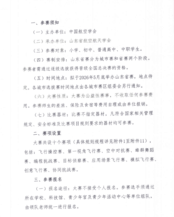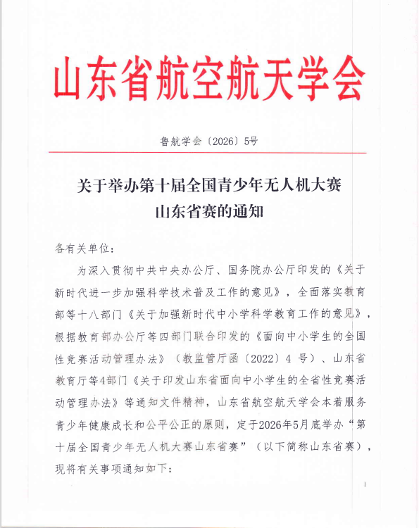 关于 关于举办第十届全国青少年无人机大赛 山东省赛 的通知